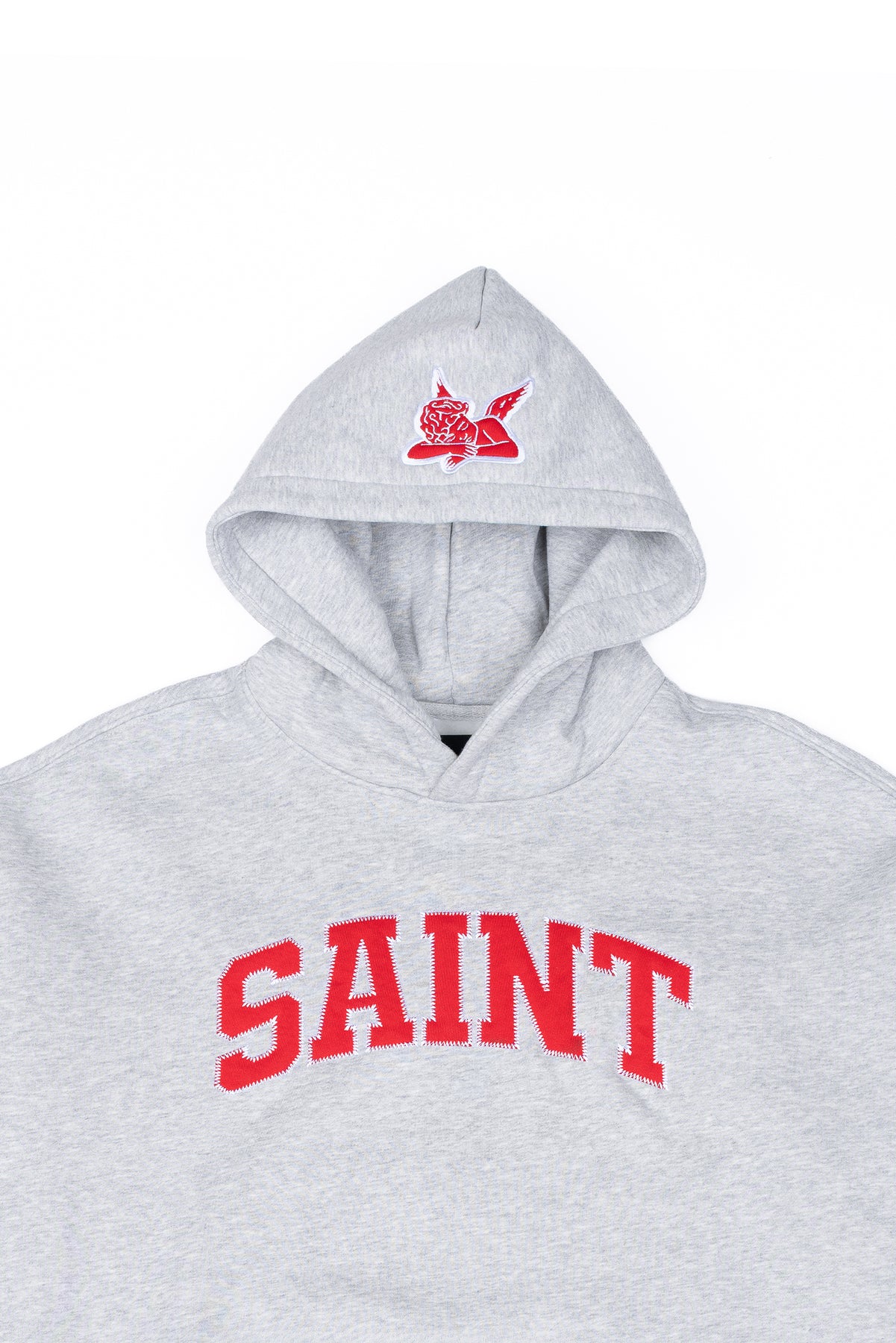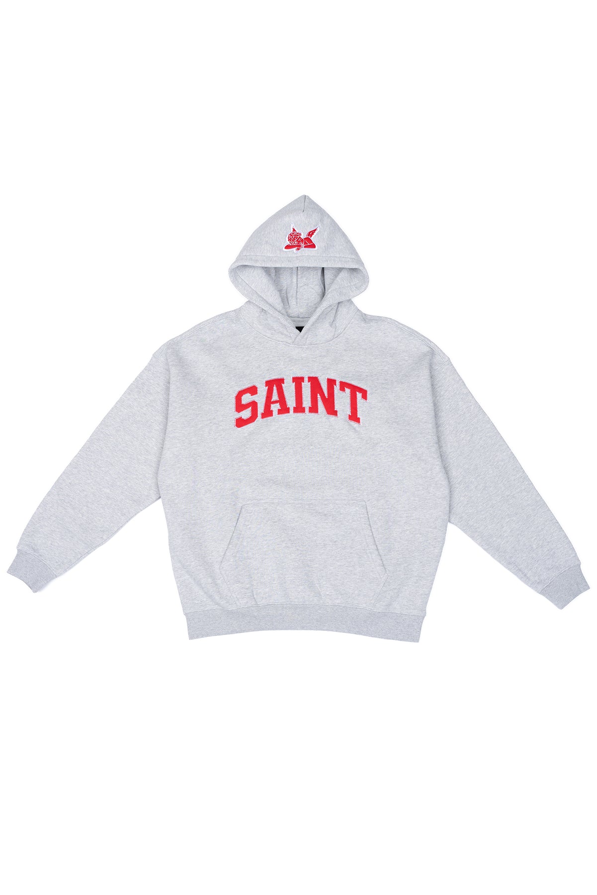 Heavyweight Brushed Red Patch Athletic Gray Hoodie